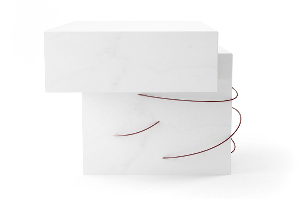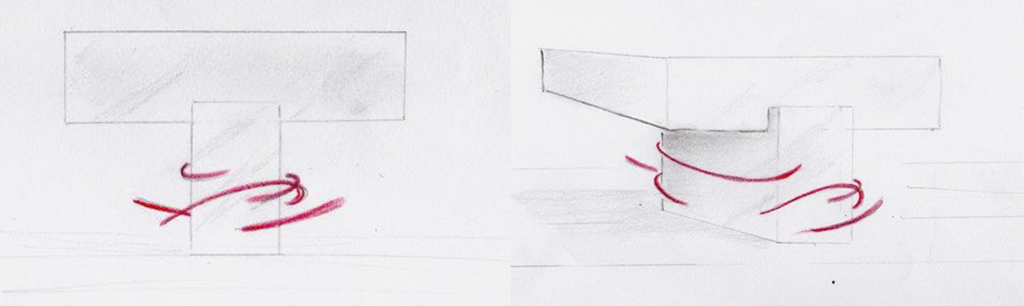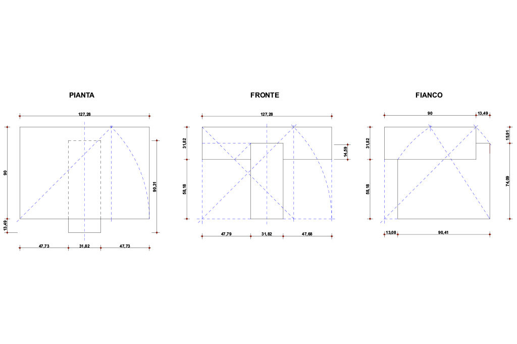 In questo composizione l’altare non può essere disgiunto dall’elemento circolare posto sul ciborio: in questa relazione si vuole significare la “presenza” di San Francesco e di S.Caterina nel luogo dell’Eucarestia; l’altare sarà a forna di “tau” e “l’anello nuziale” di forma circolare e di conseguenza non si è ritenuto di aggiungere nessun simbolo stante la completezza liturgica della composizione pensata, tranne l’evocazione della presenza dello “Spirito” nel filamento color rosso che ha “origine” nella via Crucis (via Caritatis); l’altare sarà realizzato in marmo bianco di Carrara del tipo “bianco cristallino”, dunque bianco puro con riflessi quarzosi; “l’anello nuziale” sarà realizzato in metallo dorato circolarmente illuminato.